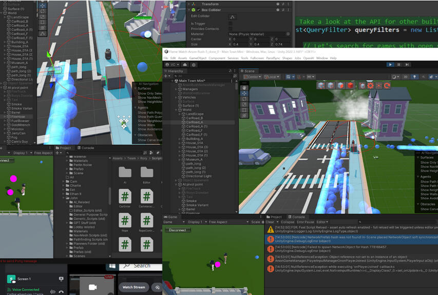 a tech demo, where I in Unity, programmed in C# basic AI, from sight to hearing and basic steering and networking